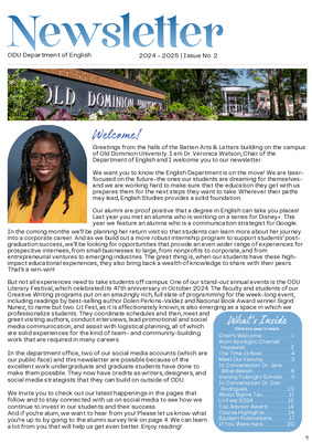 ODU English Department's 2024-2025 Annual Newsletter. The newsletter covers new courses, events, awards, students & faculty news and much more.