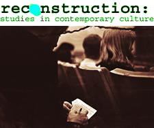 Reconstruction: Studies in Contemporary Culture (ISSN: 1547-4348) ran from 2001-2017 as an innovative online cultural studies journal. It was dedicated to fostering an intellectual community composed of scholars and their audience, granting them all the ability to share thoughts and opinions on the most important and influential work in contemporary interdisciplinary studies. See About this Journal for more information.